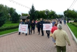 На минувшей неделе за участие в подобной акции 1 августа в Иркутске суд оштрафовал двух гражданских активистов – Владимира Смолина и Анну Чернышову. Им присудили по 10 тысяч рублей. А активистку Наташу Хорошую суд признал организатором этой акции протеста и оштрафовал на 20 тысяч рублей. Сегодня во время шествия жители Иркутска скандировали: "Наташа – это мы!". Завершилось шествие там, где началось – в сквере Кирова, скандированием: "Мы придем сюда еще!".