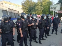 Как сообщает корреспондент Сибирь.Реалии с места событий, больше семи человек задержали. Это были те, кто задавал тон кричалкам, и кто был с плакатами. Самым первым был задержан 75-летний правозащитник Валентин Кузнецов. Его забрали в отдел, когда участники акции пошли колонной. Кузнецов хотел поехать домой, зашёл в автобус, но сотрудники в штатском вывели его на улицу и положили на асфальт. Позже патрульная машина, которую они вызвали, забрала правозащитника в отдел полиции 10. На Кузнецова оформили два протокола за участие в несанкционированном публичном мероприятии и за нарушение режима повышенной готовности. После этого его выпустили.
