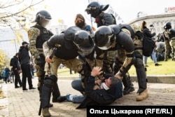 – Фашисты! Фашисты! Фашисты! – срывая голос, кричала пенсионерка. Но омоновцы отодвигали резиновыми дубинками всех, кто пытался помочь женщине, лежавшей на асфальте: она упала во время атаки омоновцев и, как выяснилось потом, получила черепно-мозговую травму и оказалась в больнице. Свидетели говорят, что ее толкнул кто-то из сотрудников правоохранительных органов.