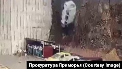 Микроавтобус упал с 12-метровой высоты на припаркованные автомобили в центре Владивостока. Один человек погиб.