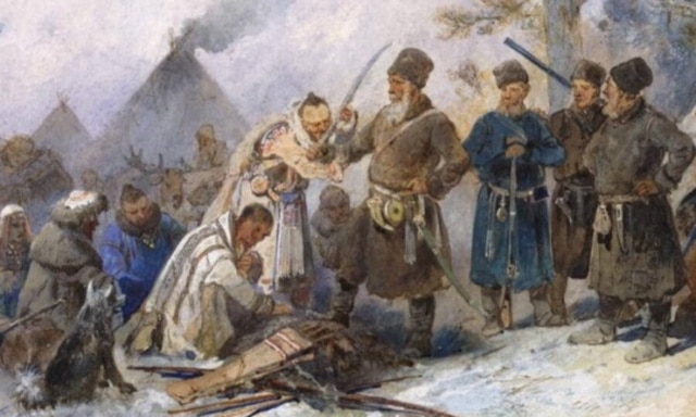 В официальной российской историографии присоединение Сибири обычно подавалось как мирное освоение Азиатской части России. Предводители вооруженных, в основном казачьих, отрядов (Хабаров, Дежнев, Похабов и другие) именуются в школьных учебниках "первопроходцами", как будто бы они шли через необитаемые земли, где прежде не ступала нога человека. На самом же деле многие сибирские народы, от татар на западе до чукчей на северо-востоке, оказывали русским вооруженное сопротивление вплоть до XIX века, и количество погибших в этих войнах исчисляется десятками тысяч.