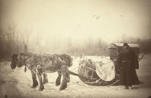 Джордж Кеннан в санях путешествует по Сибири